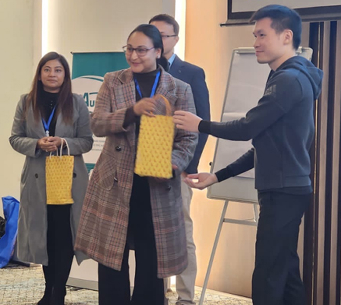 Dr. Shaila RL Rana receiving surprise gift for best question during the session